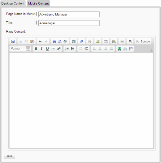 Once you have the Custom Mobile Content enabled you will be able to add content which is specific to your Mobile Website. This is important if you have content on some of your regular content pages which is quite wide (for example, wide images, tables etc). So this means you will be able to create a mobile friendly alternative.